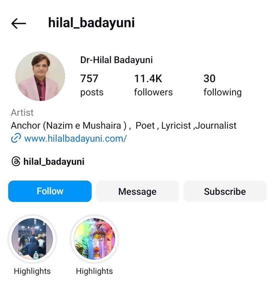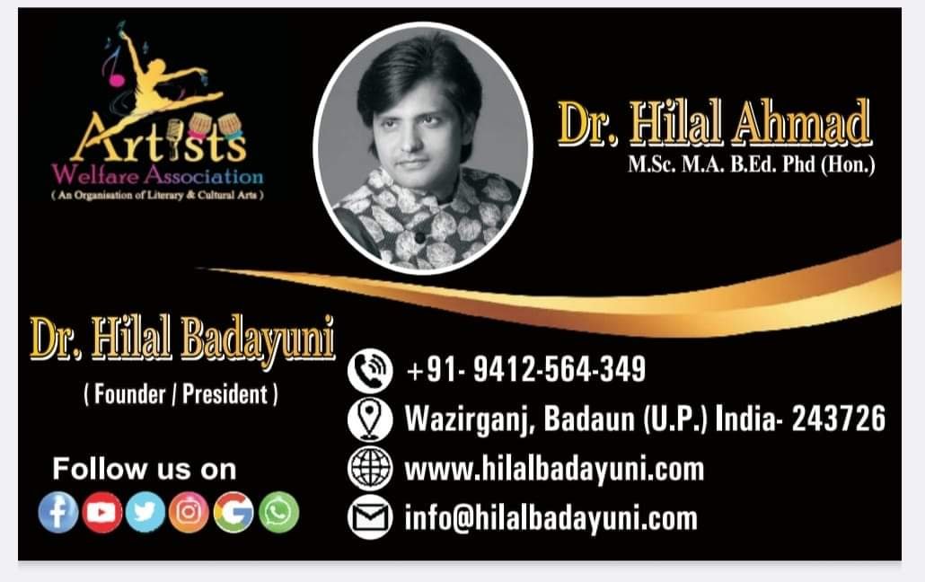 Dr. Hilal Badayuni is the youngest Indian Poet who has received such high honours and admiration throughout the world for his anchoring in Mushaira & kavisammelan . He started shining like the moon and made a special identity with Mushairas / Kavisammelan at an early age. He has participated 1,000+ Literary Mushairas (Poetic Symposia), Conferences and Seminars with eminent poets all over India . He is a very well known and popular figure in Literary Programmes . It is agreed on all hands that he is one of youngest famous anchor of the India.